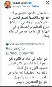 ورد ساويرس معلقًا: «ومين قالك إن إحنا ما بنعملش كل ده؟ خش على موقع مؤسسة ساويرس لو يهمك تتأكد بصحيح