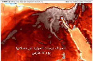 فإن ذروة الارتفاع في درجات الحرارة سيكون يوم الإثنين الموافق 17 مارس