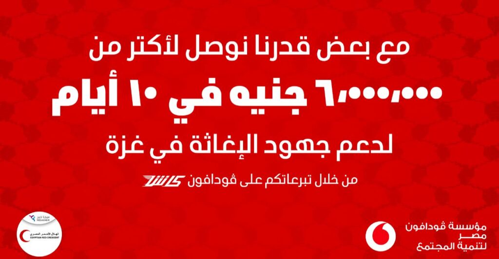 6 مليون جنيه خلال 10 أيام لصالح لغزه..ڤودافون مصر وعملاؤها يدعمون